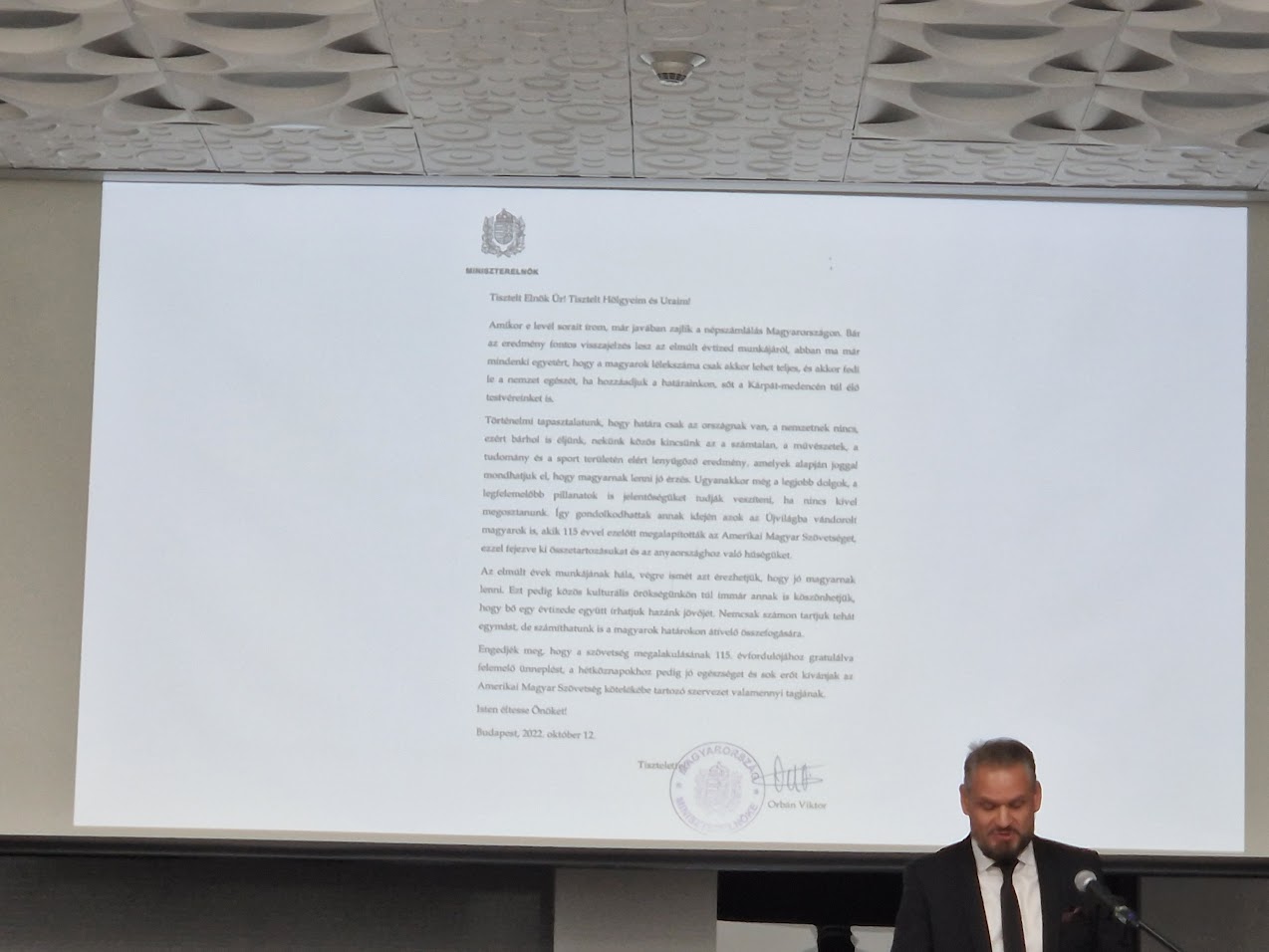 A gálavacsora fővédnöke Takács Szabolcs nagykövet úr volt, aki ünnepi beszédét követően Orbán Viktor miniszterelnök köszöntő levelét is felolvasta.