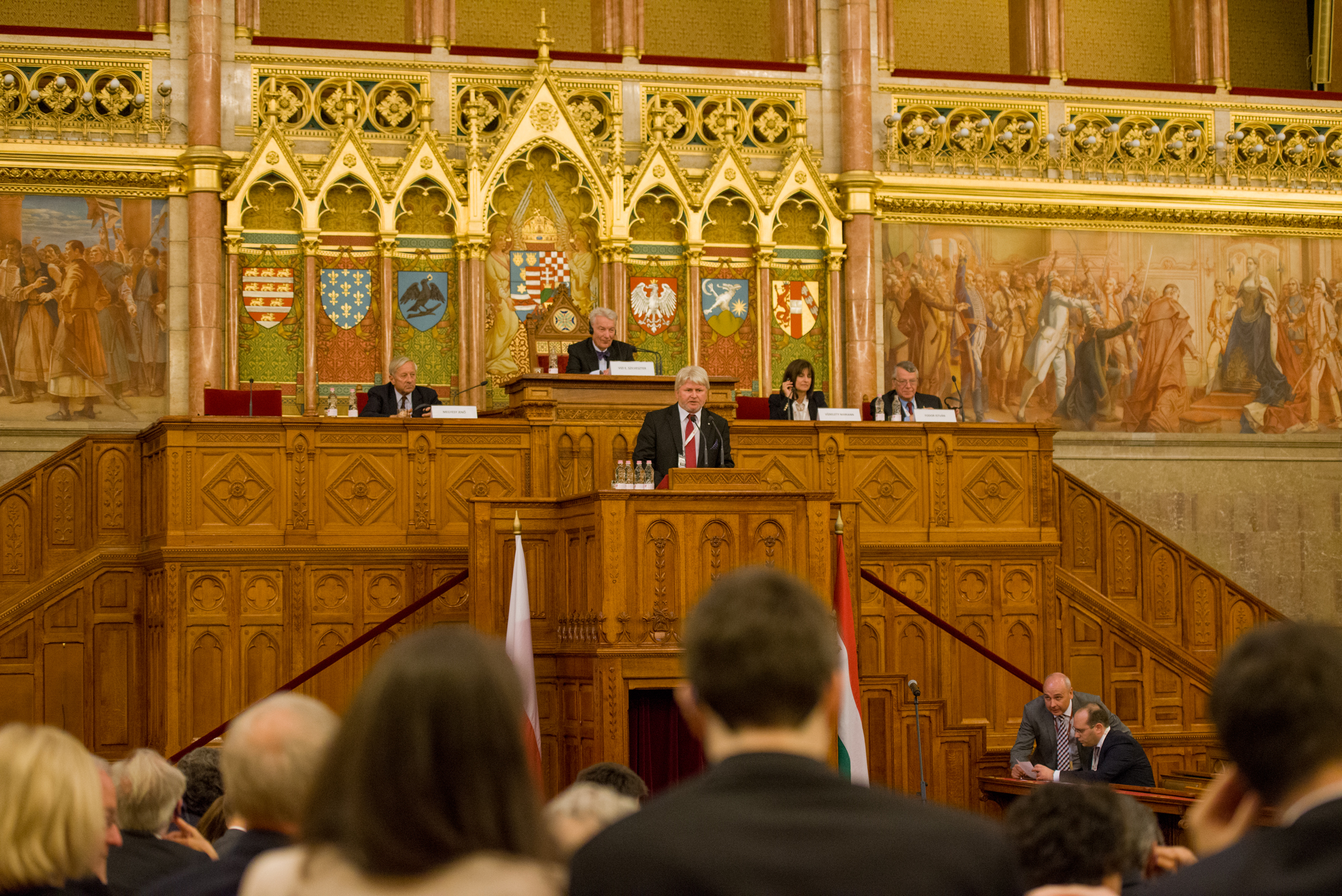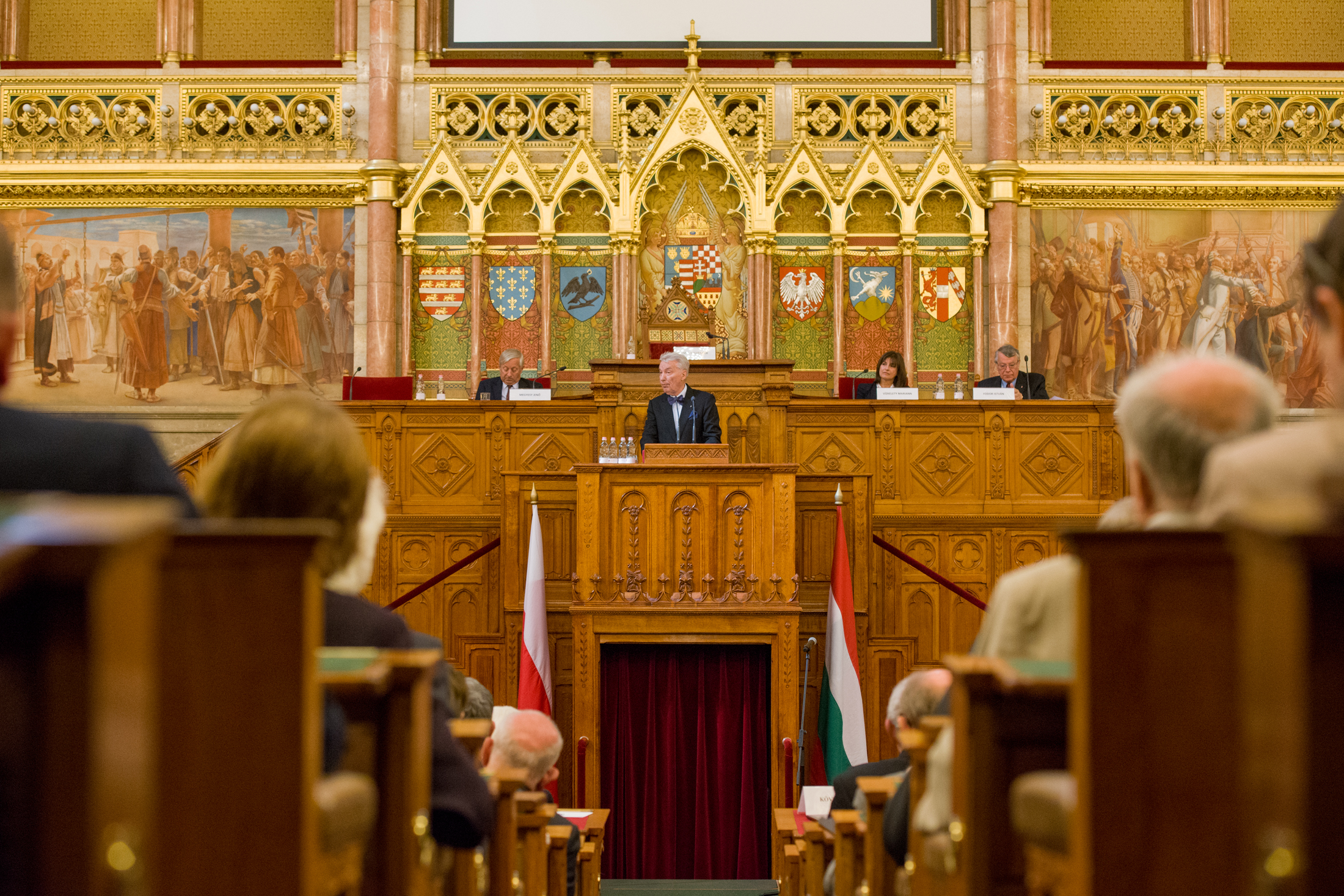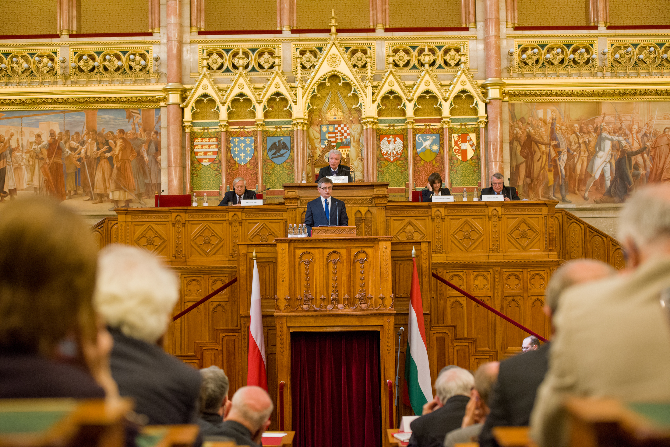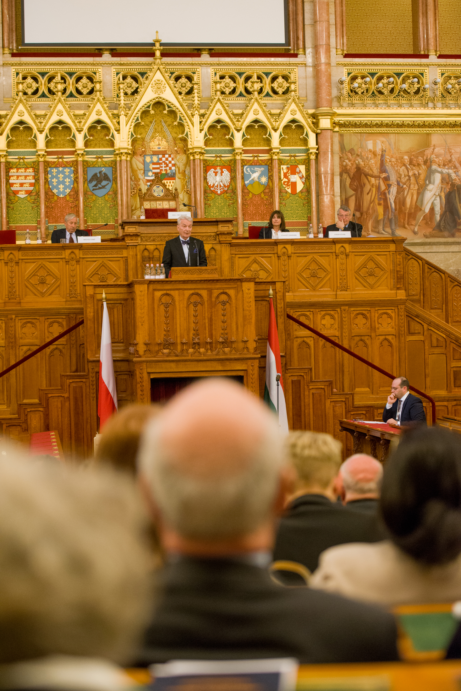 A látogatás után a Magyarország Barátai Alapítvány közössége szimpóziumot tartott, melynek fő témája az ’56-os emlékév kapcsán a lengyel-magyar barátság volt. A Parlamentben rendezett tanácskozáson felszólalt Kövér László, az Országgyűlés elnöke és Marek Kuchcinski, a Szejm elnöke. A lengyel országgyűlés alsóházának elnöke évek óta elkötelezett támogatója a két ország közötti kapcsolatok elmélyítésének, érdekeik közös képviseletének. Tevékenysége elismeréseként a Magyarország Barátai Közösség tiszteletbeli tagjává választotta. Az ezt tanúsító díszoklevelet az alapítvány kuratóriumának elnöke, Vizi E. Szilveszter adta át Marek Kuchcinskinak. Ezt követően a vendégek párhuzamos műhelybeszélgetéseken vehettek részt.