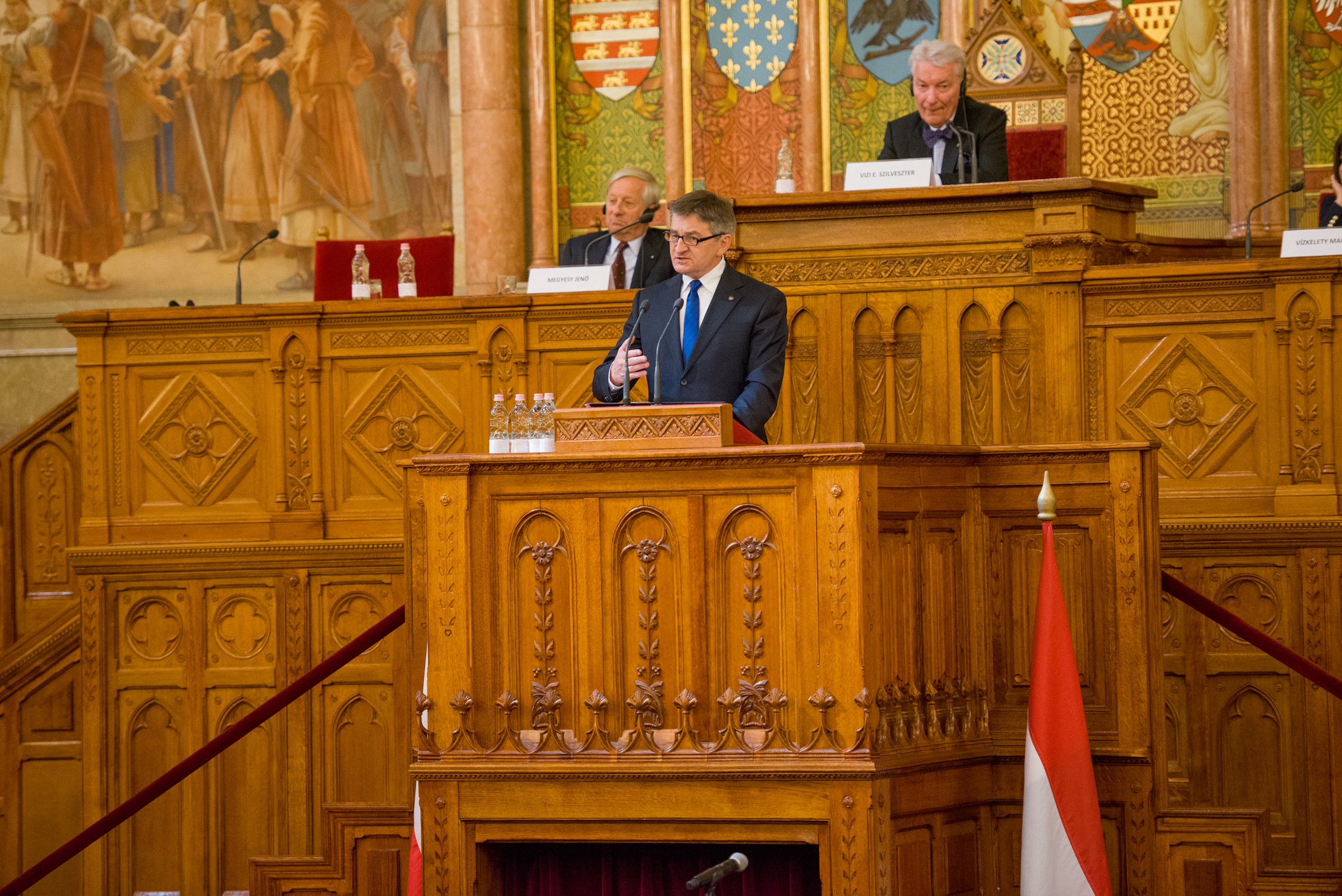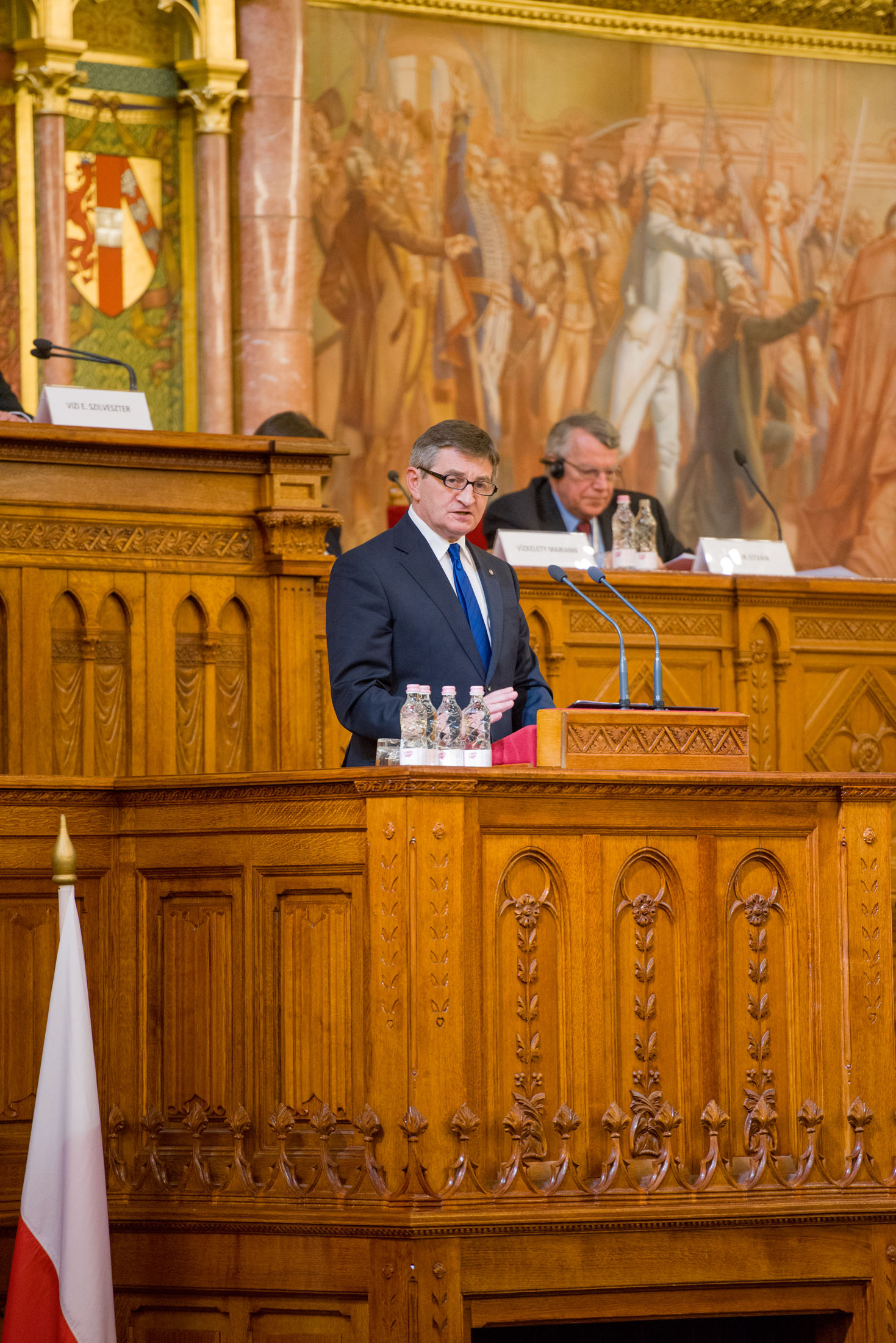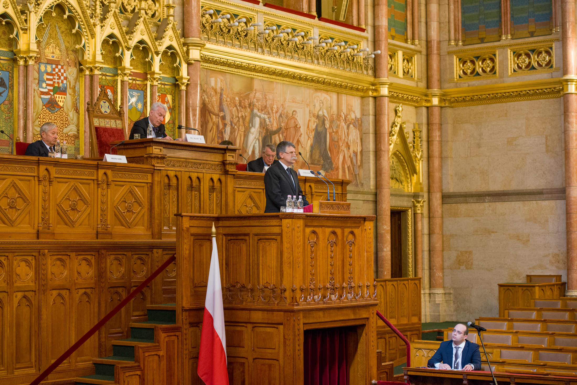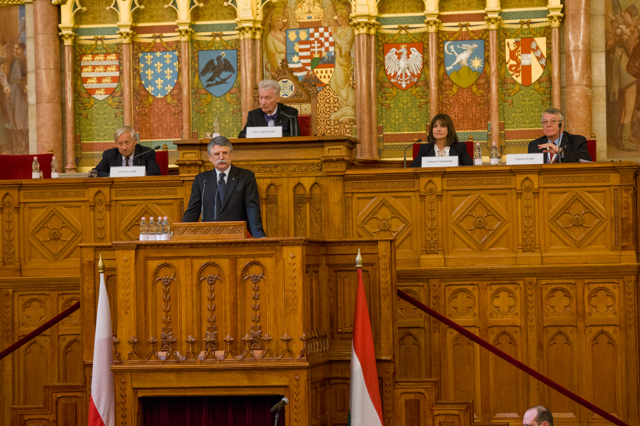 A látogatás után a Magyarország Barátai Alapítvány közössége szimpóziumot tartott, melynek fő témája az ’56-os emlékév kapcsán a lengyel-magyar barátság volt. A Parlamentben rendezett tanácskozáson felszólalt Kövér László, az Országgyűlés elnöke és Marek Kuchcinski, a Szejm elnöke. A lengyel országgyűlés alsóházának elnöke évek óta elkötelezett támogatója a két ország közötti kapcsolatok elmélyítésének, érdekeik közös képviseletének. Tevékenysége elismeréseként a Magyarország Barátai Közösség tiszteletbeli tagjává választotta. Az ezt tanúsító díszoklevelet az alapítvány kuratóriumának elnöke, Vizi E. Szilveszter adta át Marek Kuchcinskinak. Ezt követően a vendégek párhuzamos műhelybeszélgetéseken vehettek részt.