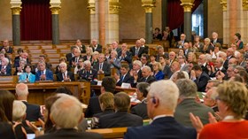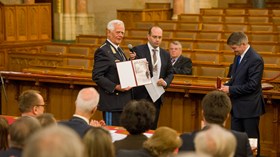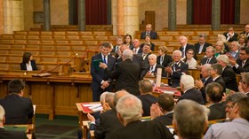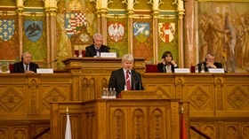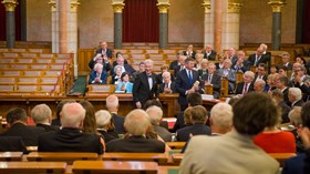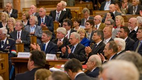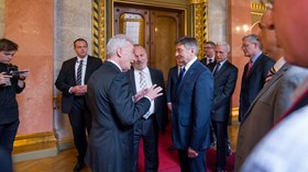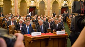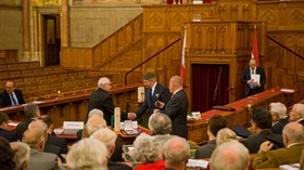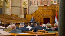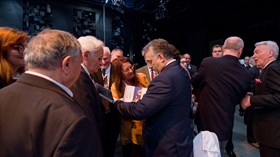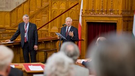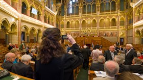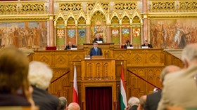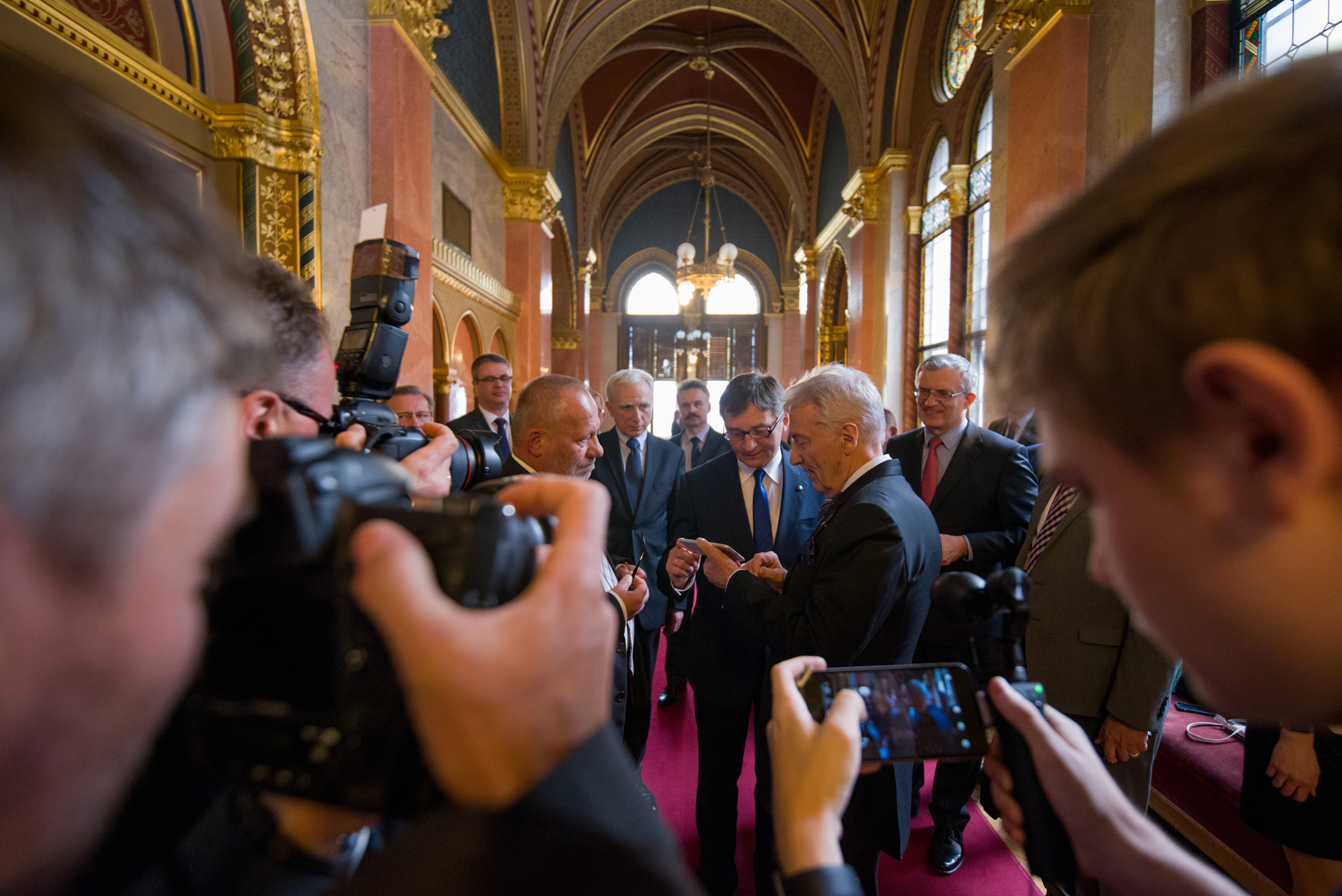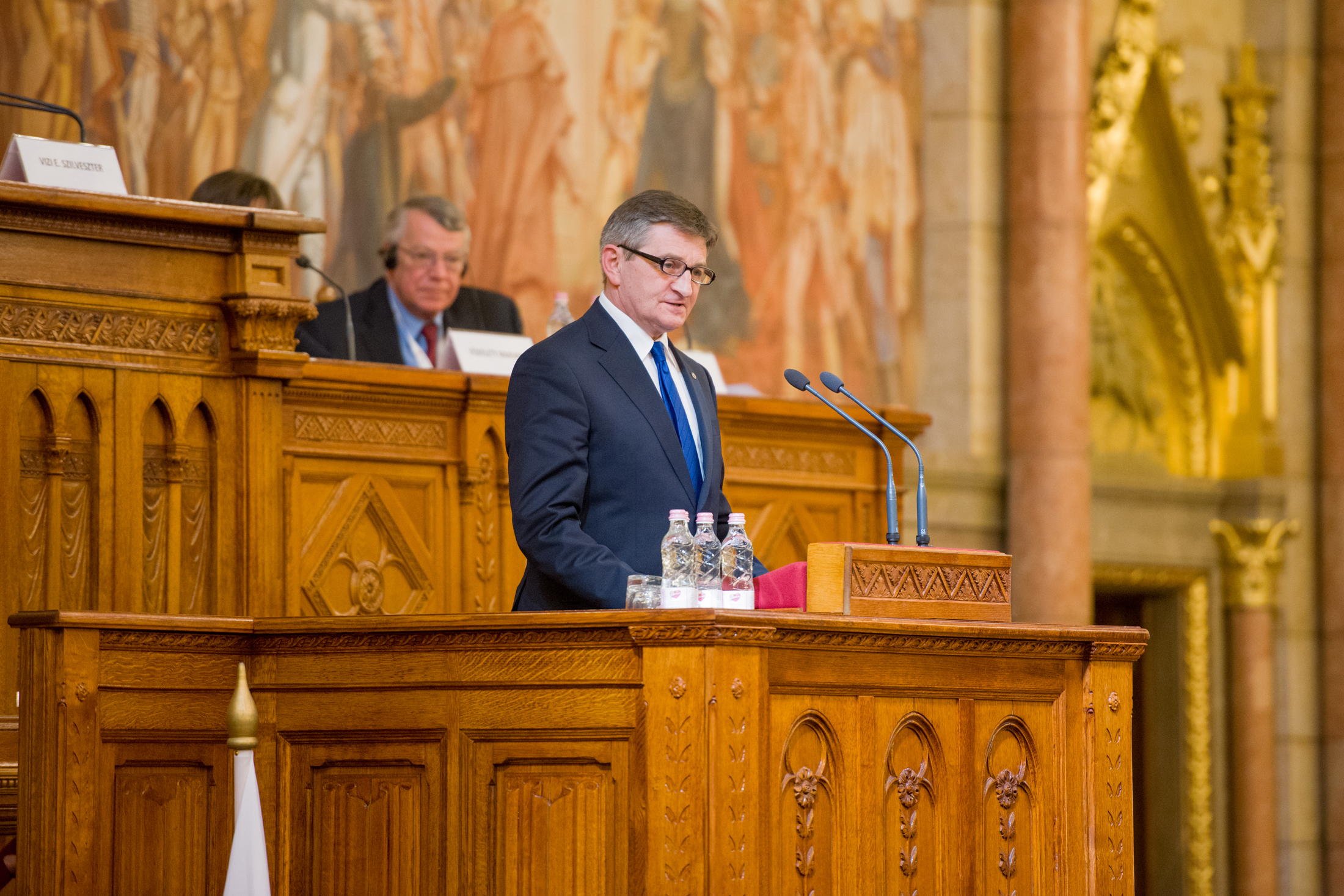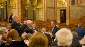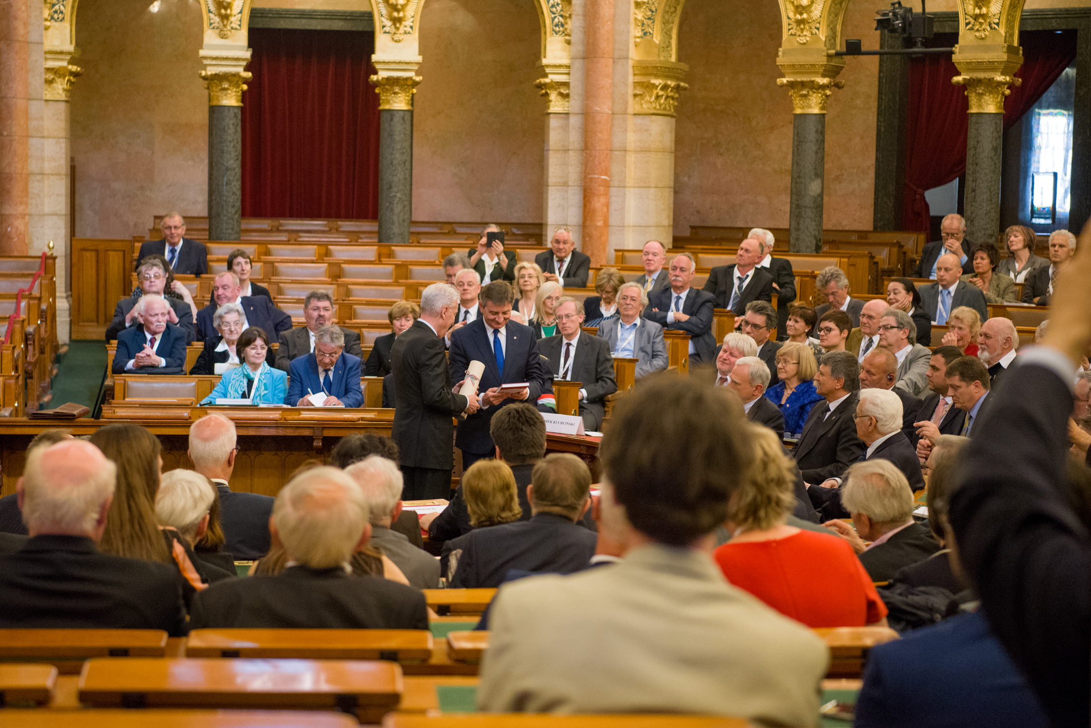 A látogatás után a Magyarország Barátai Alapítvány közössége szimpóziumot tartott, melynek fő témája az ’56-os emlékév kapcsán a lengyel-magyar barátság volt. A Parlamentben rendezett tanácskozáson felszólalt Kövér László, az Országgyűlés elnöke és Marek Kuchcinski, a Szejm elnöke. A lengyel országgyűlés alsóházának elnöke évek óta elkötelezett támogatója a két ország közötti kapcsolatok elmélyítésének, érdekeik közös képviseletének. Tevékenysége elismeréseként a Magyarország Barátai Közösség tiszteletbeli tagjává választotta. Az ezt tanúsító díszoklevelet az alapítvány kuratóriumának elnöke, Vizi E. Szilveszter adta át Marek Kuchcinskinak. Ezt követően a vendégek párhuzamos műhelybeszélgetéseken vehettek részt.