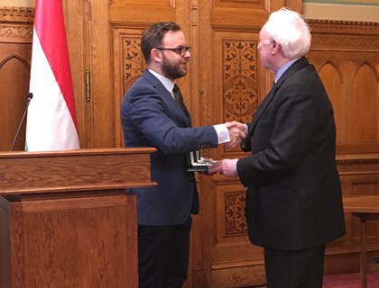 John O'Sullivan, a Danube Institute elnöke, a Magyarország Barátai Közösség tagja, Margaret Thatcher egykori brit miniszterelnök volt tanácsadója számára Orbán Balázs, a Miniszterelnökség miniszterhelyettese adta át a Magyar Érdemrend Középkeresztje kitüntetést 2019. február 12-én a Parlamentben