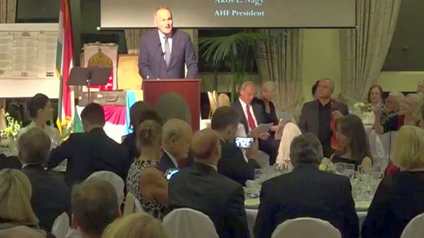Kijelentette: az AMSZ fennállása 110 évében példát adott minden magyarnak arra, miként lehet és kell sok ezer kilométerre a hazától is felelősséget vállalni az egész magyar nemzetért. Szilágyi Péter átadta az egyesületnek a magyar kormány elismerő oklevelét Nagy L. Ákos-nak; az AMSZ elnöke megköszönteaz elismerést. Az ünnepségen jelen volt Vízi E. Szilveszter akadémikus, a Magyarország Barátai Alapítvány elnöke, a Magyar Tudományos Akadémai egykori elnöke.