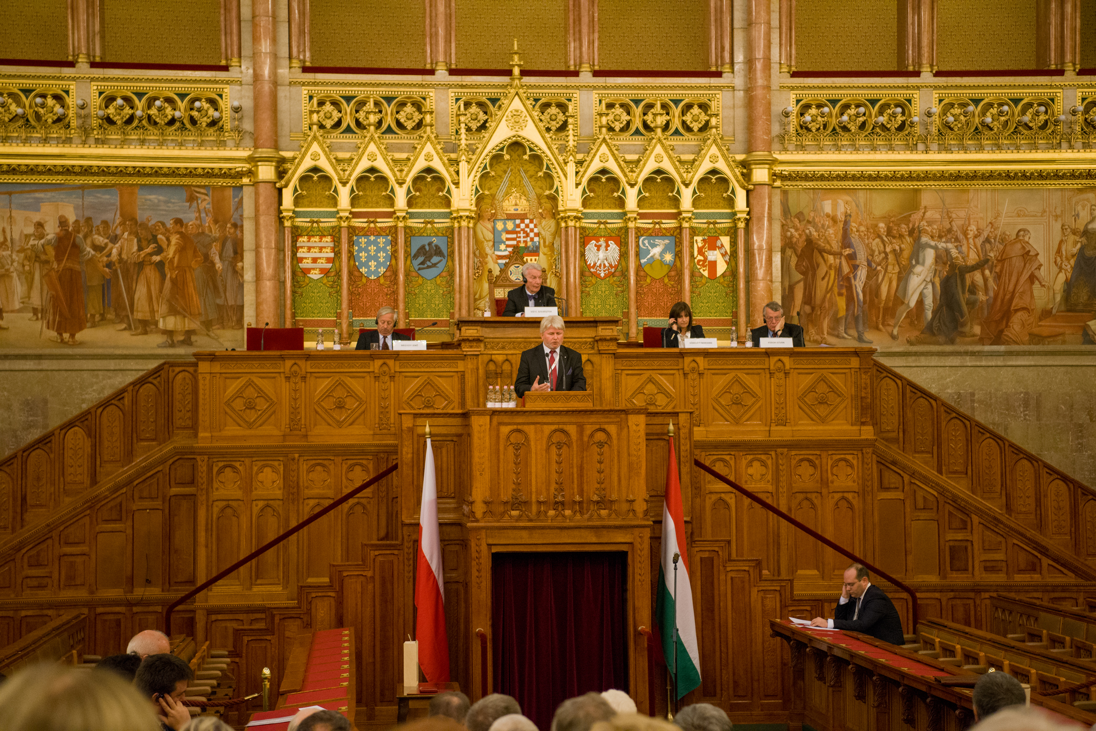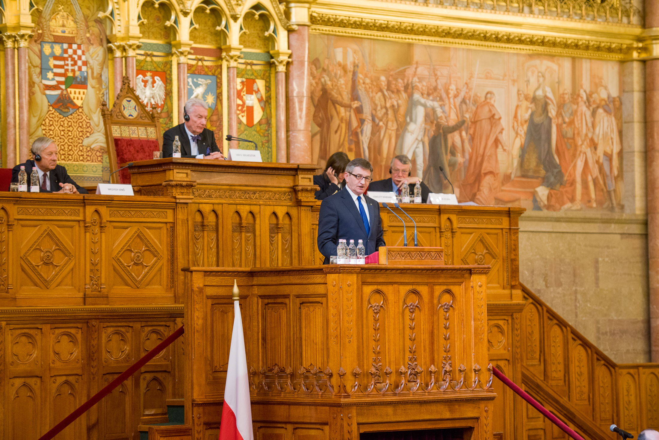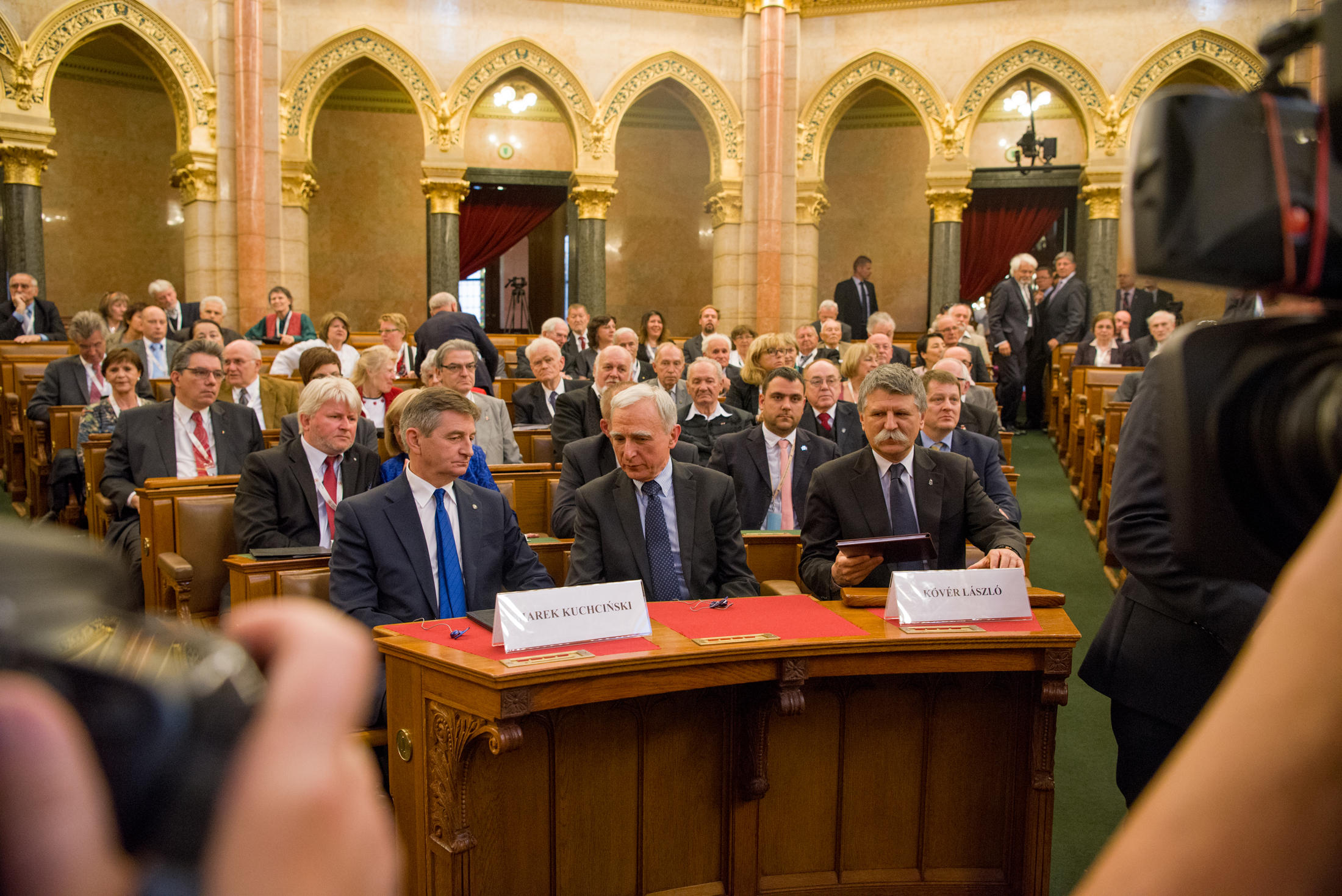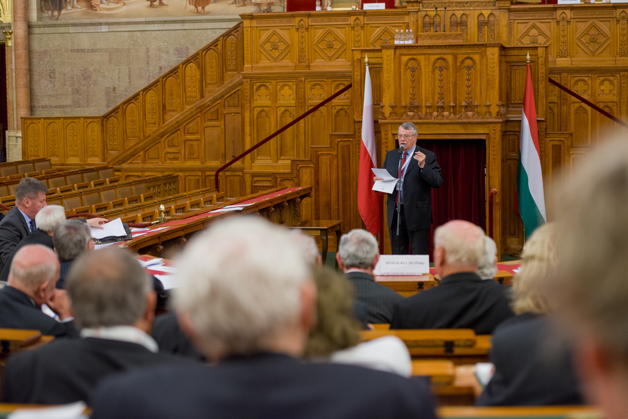 A látogatás után a Magyarország Barátai Alapítvány közössége szimpóziumot tartott, melynek fő témája az ’56-os emlékév kapcsán a lengyel-magyar barátság volt. A Parlamentben rendezett tanácskozáson felszólalt Kövér László, az Országgyűlés elnöke és Marek Kuchcinski, a Szejm elnöke. A lengyel országgyűlés alsóházának elnöke évek óta elkötelezett támogatója a két ország közötti kapcsolatok elmélyítésének, érdekeik közös képviseletének. Tevékenysége elismeréseként a Magyarország Barátai Közösség tiszteletbeli tagjává választotta. Az ezt tanúsító díszoklevelet az alapítvány kuratóriumának elnöke, Vizi E. Szilveszter adta át Marek Kuchcinskinak. Ezt követően a vendégek párhuzamos műhelybeszélgetéseken vehettek részt.