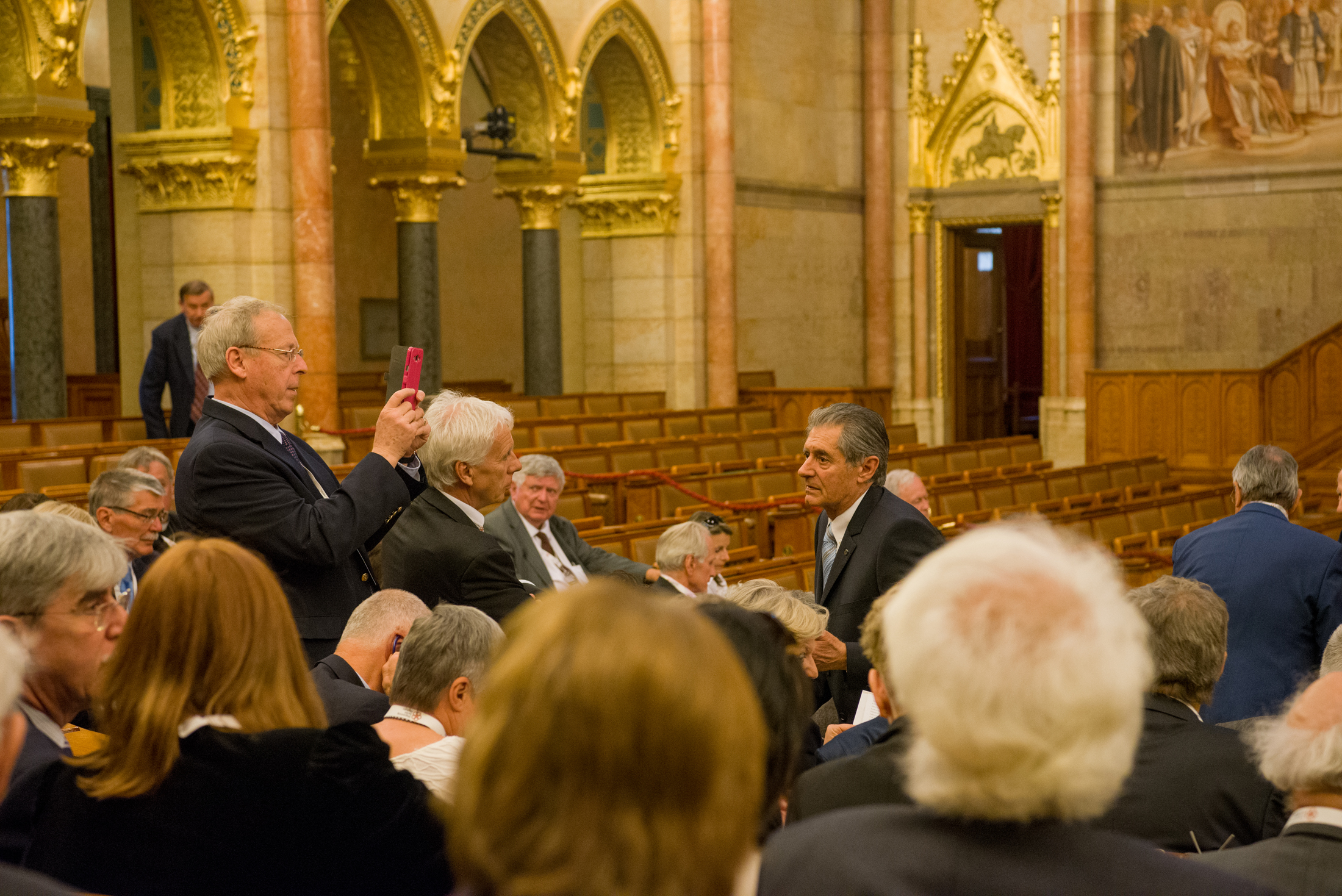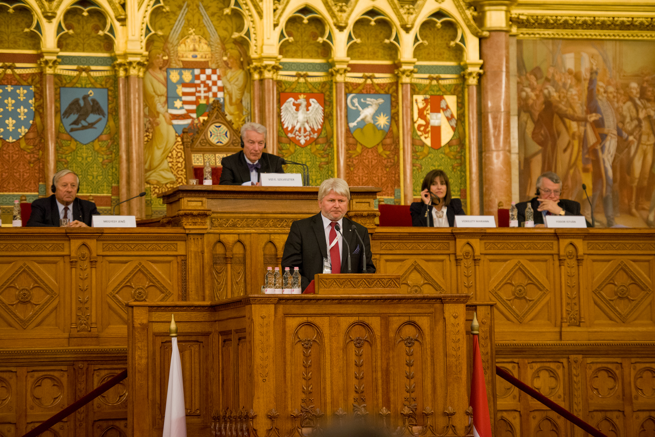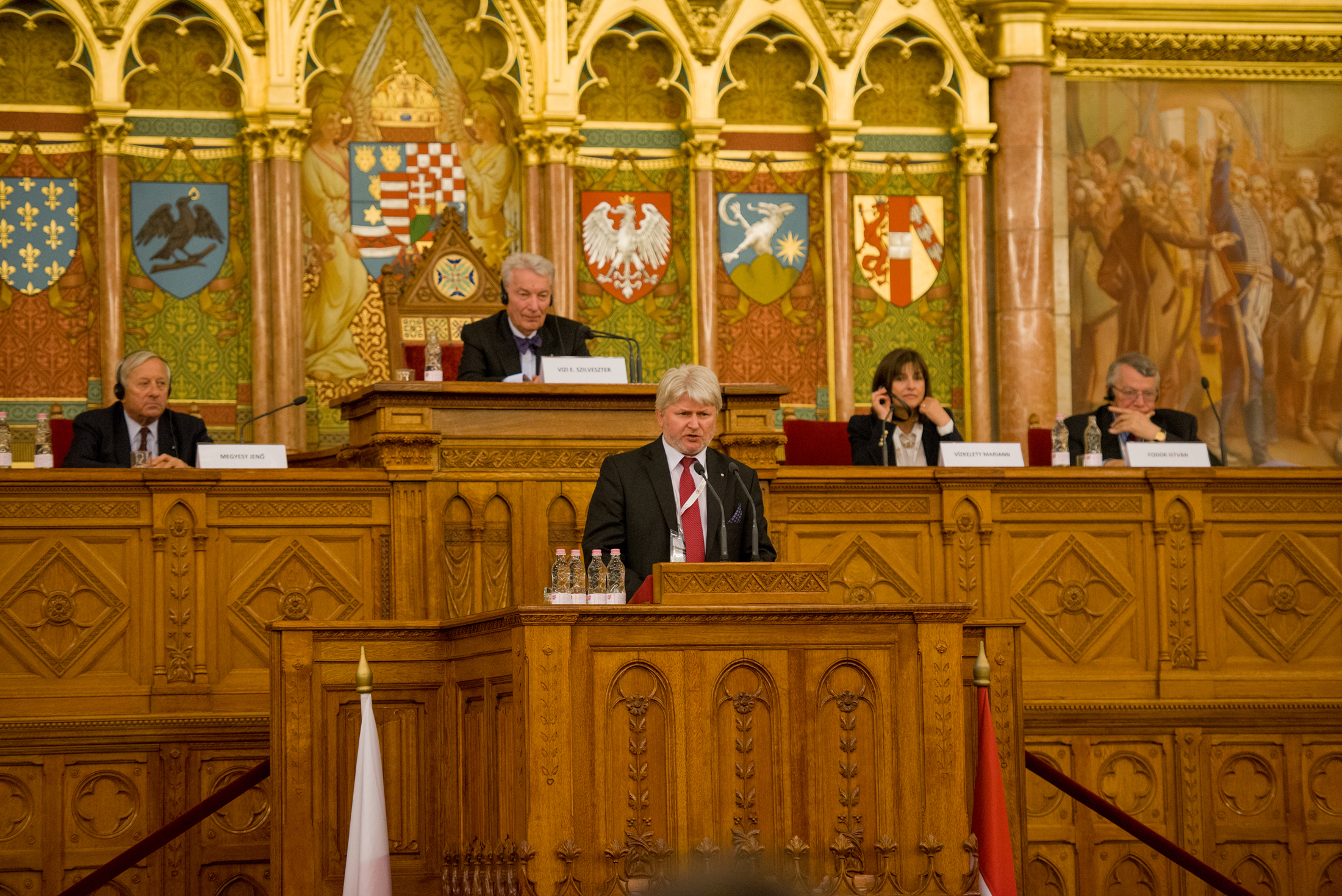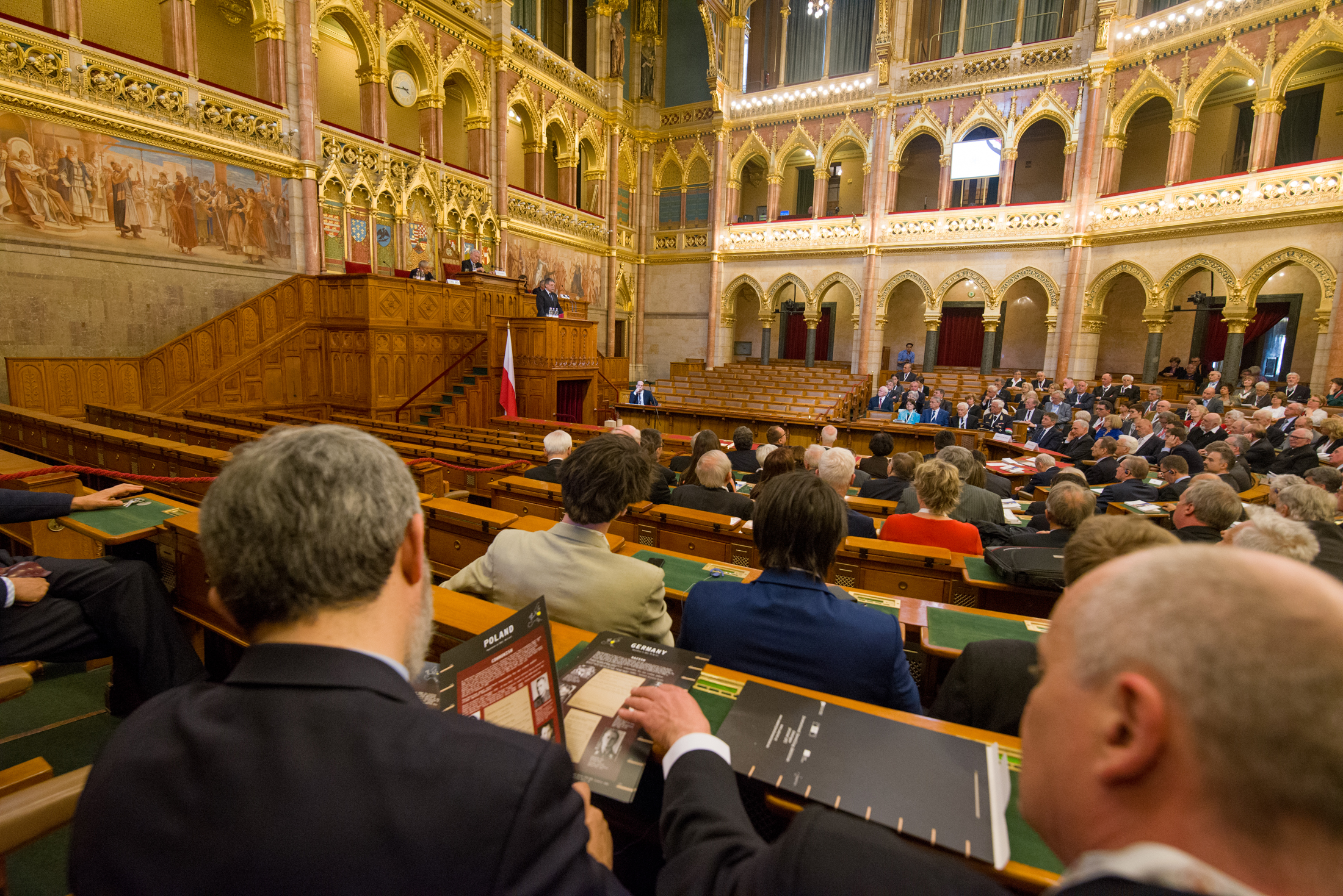 A látogatás után a Magyarország Barátai Alapítvány közössége szimpóziumot tartott, melynek fő témája az ’56-os emlékév kapcsán a lengyel-magyar barátság volt. A Parlamentben rendezett tanácskozáson felszólalt Kövér László, az Országgyűlés elnöke és Marek Kuchcinski, a Szejm elnöke. A lengyel országgyűlés alsóházának elnöke évek óta elkötelezett támogatója a két ország közötti kapcsolatok elmélyítésének, érdekeik közös képviseletének. Tevékenysége elismeréseként a Magyarország Barátai Közösség tiszteletbeli tagjává választotta. Az ezt tanúsító díszoklevelet az alapítvány kuratóriumának elnöke, Vizi E. Szilveszter adta át Marek Kuchcinskinak. Ezt követően a vendégek párhuzamos műhelybeszélgetéseken vehettek részt.