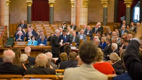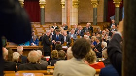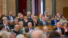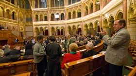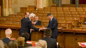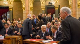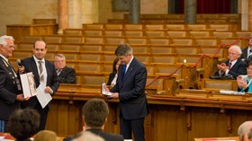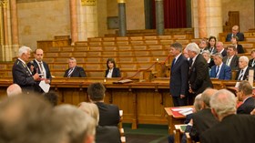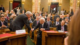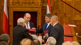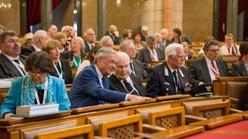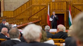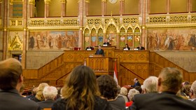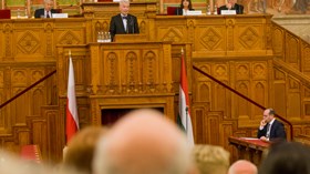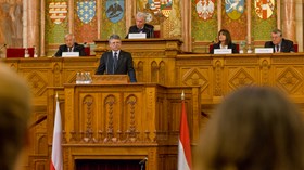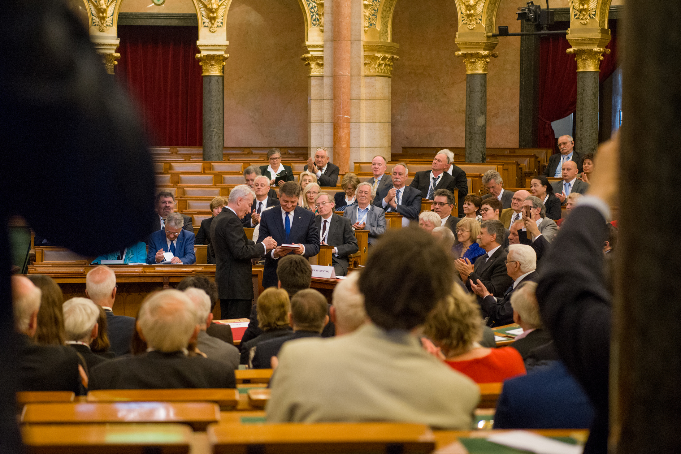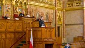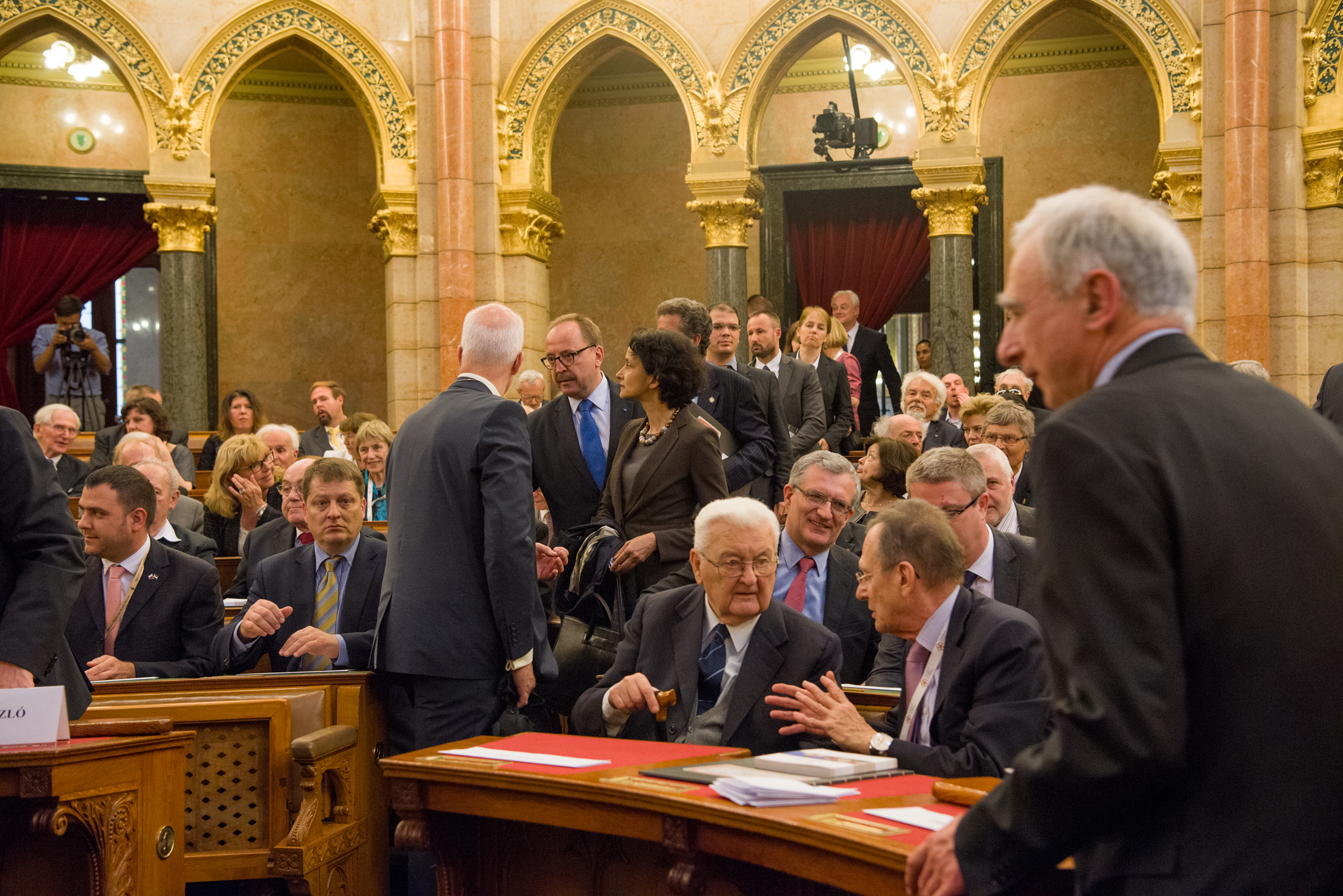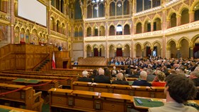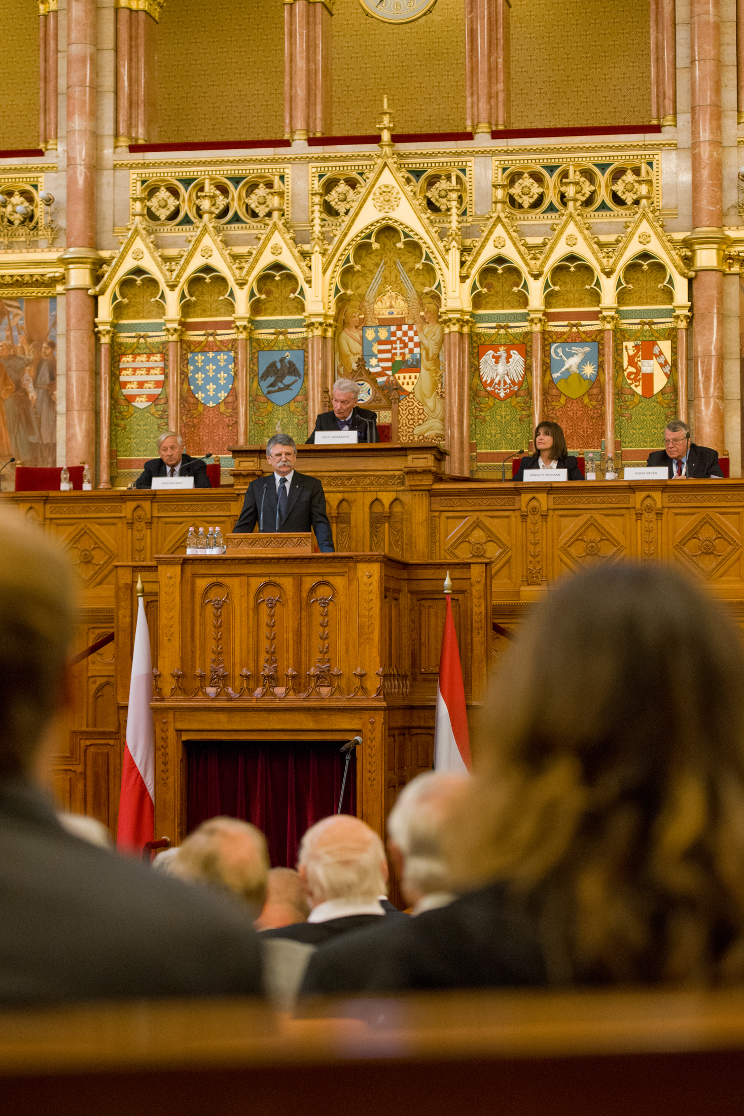 A látogatás után a Magyarország Barátai Alapítvány közössége szimpóziumot tartott, melynek fő témája az ’56-os emlékév kapcsán a lengyel-magyar barátság volt. A Parlamentben rendezett tanácskozáson felszólalt Kövér László, az Országgyűlés elnöke és Marek Kuchcinski, a Szejm elnöke. A lengyel országgyűlés alsóházának elnöke évek óta elkötelezett támogatója a két ország közötti kapcsolatok elmélyítésének, érdekeik közös képviseletének. Tevékenysége elismeréseként a Magyarország Barátai Közösség tiszteletbeli tagjává választotta. Az ezt tanúsító díszoklevelet az alapítvány kuratóriumának elnöke, Vizi E. Szilveszter adta át Marek Kuchcinskinak. Ezt követően a vendégek párhuzamos műhelybeszélgetéseken vehettek részt.