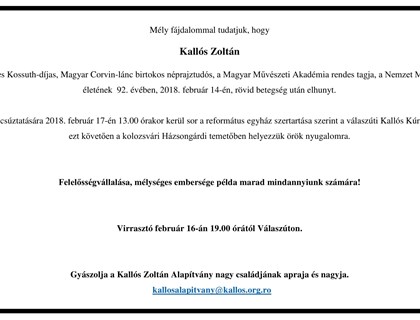 Elhunyt Kallós Zoltán kétszeres Kossuth-díjas, Magyar Corvin-lánc birtokos néprajztudós
