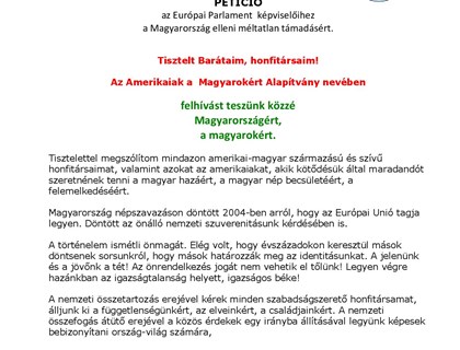 Az Amerikaiak a Magyarokért Alapítvány petíciója az Európai Parlament képviselőihez